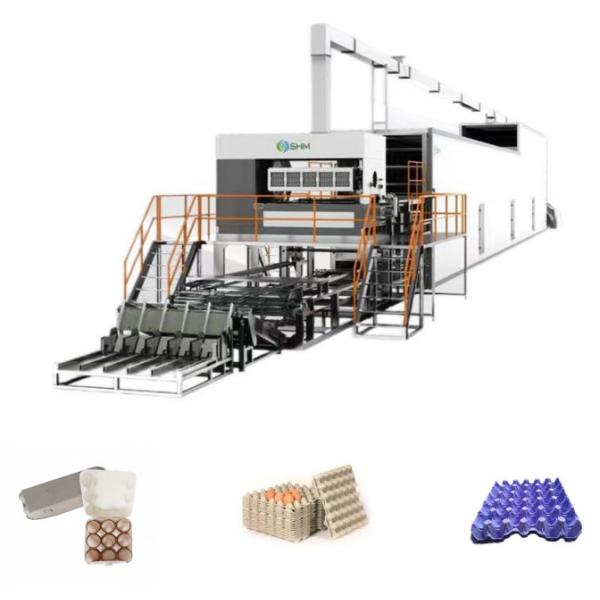 SHM Pulp Molding Automatic Egg Box Molding Machine is an eco-friendly solution for producing egg boxes and other molded fiber products using recycled waste paper. This automated machine efficiently processes waste paper into high-quality, sustainable packaging. It molds the paper pulp into precise shapes, optimizes material usage, and contributes to a circular economy by reusing paper waste. With its automation and recycling capabilities, this machine is an environmentally responsible choice for businesses looking to reduce waste and manufacture eco-friendly egg boxes and packaging solutions.